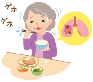 誤嚥は、むせやせきで気づくこともありますが、高齢者ではせき反射が弱く、むせないまま静かに起こる「不顕性誤嚥」もあります。これが誤嚥性肺炎の原因になりやすく、とくに注意が必要です。